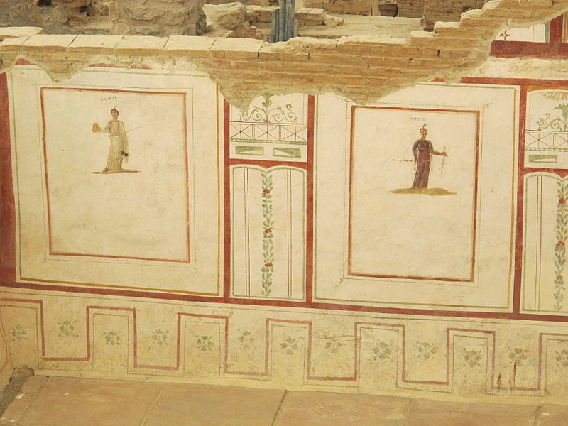 Si l’on en croit Pline, la peinture murale fit son apparition au temps d’Auguste, Ludius aurait été le premier à couvrir des murs avec des représentations bucoliques : à noter que cette époque exalte le retour à la terre après de nombreuses années de guerres civiles (en littérature Virgile est le représentant le plus connu de ce courant).