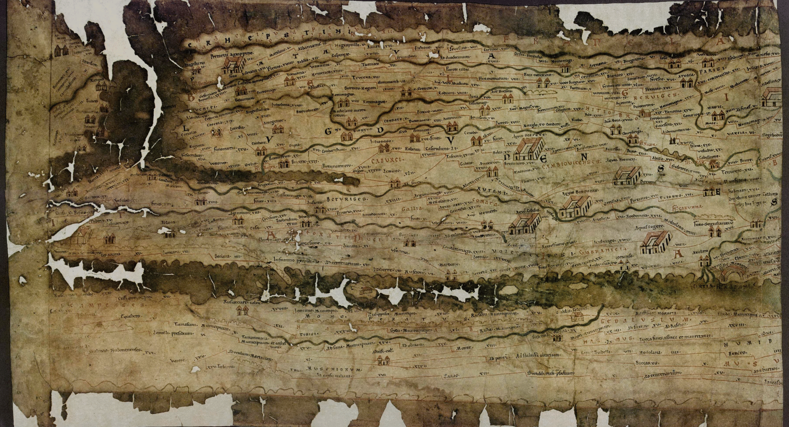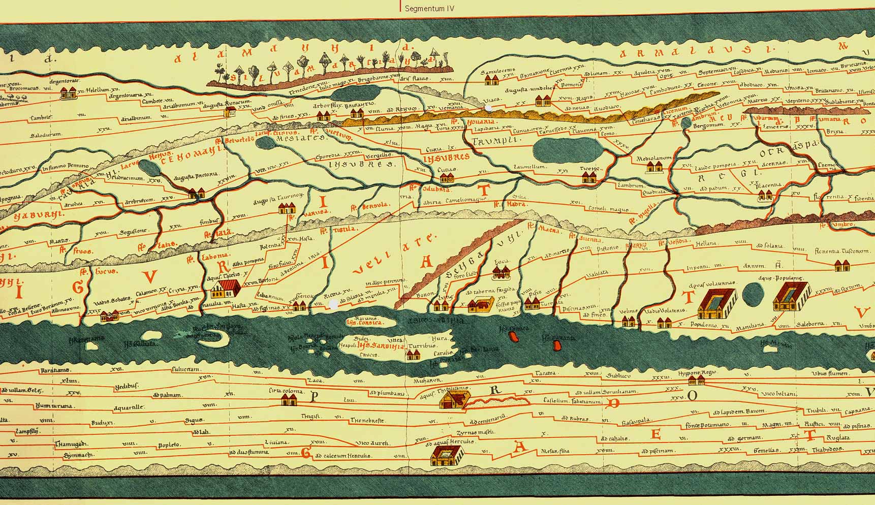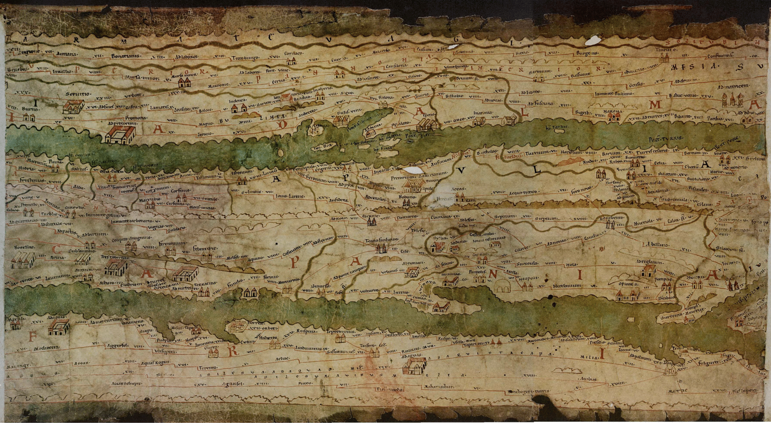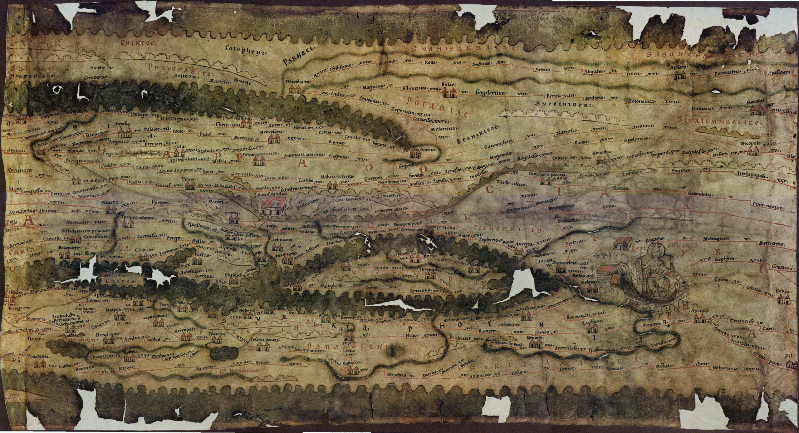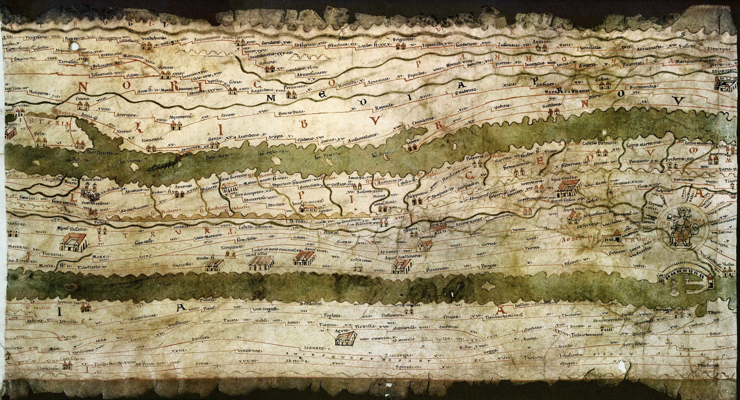 C’est une longue bande de parchemin composée à l’origine de 12 parchemins mais il n’en reste aujourd’hui que 11 entreposés à Vienne (Autriche). Assemblés ils forment une bande de 6,82 m sur 0,34 m. Elle montre l’emplacement des routes (200 000 km), des villes, des mers, des fleuves, des forêts, des chaînes de montagnes.