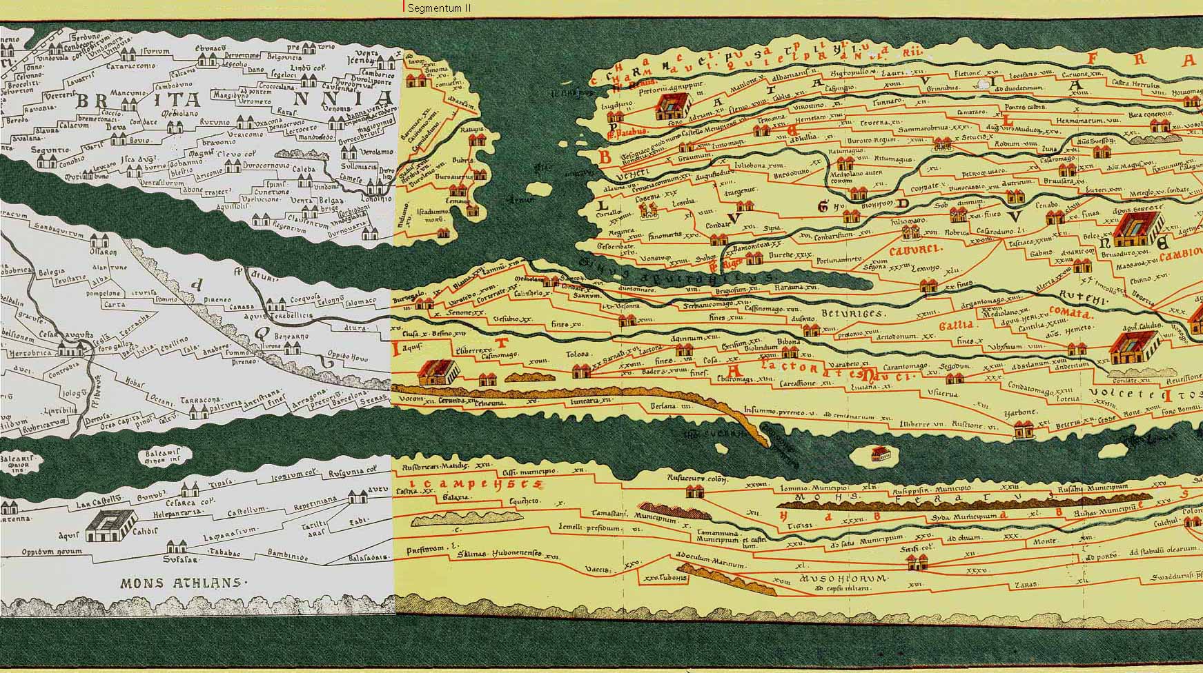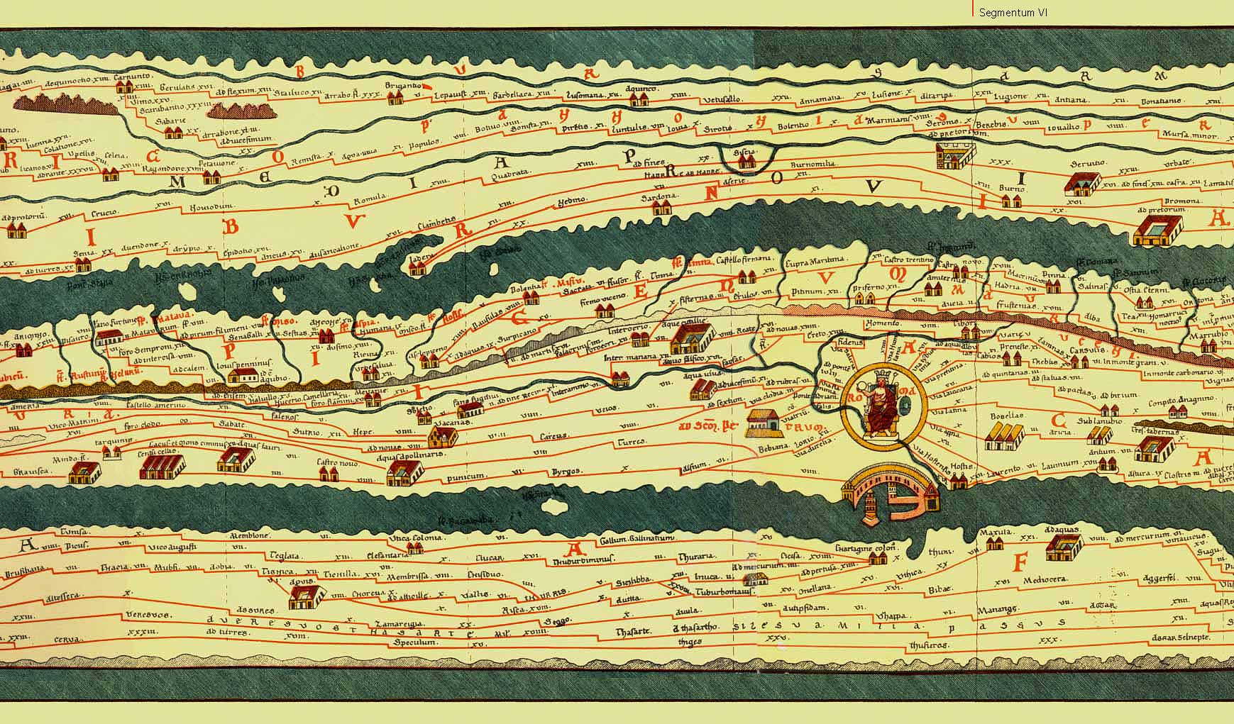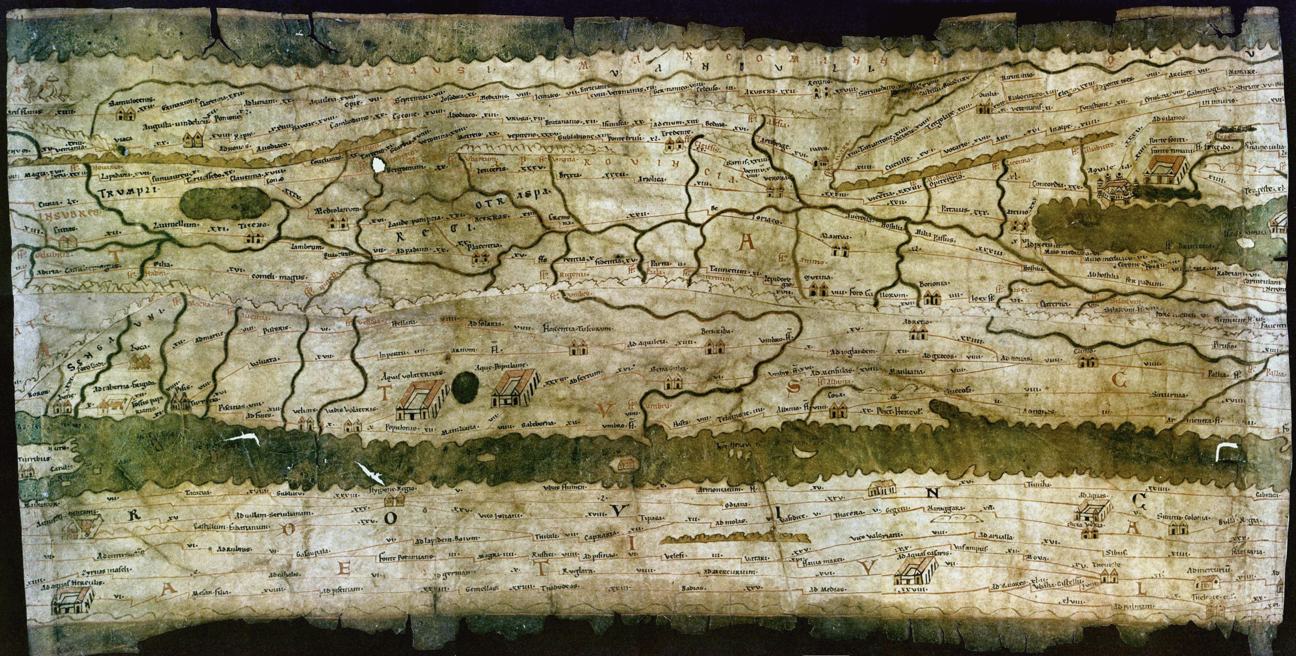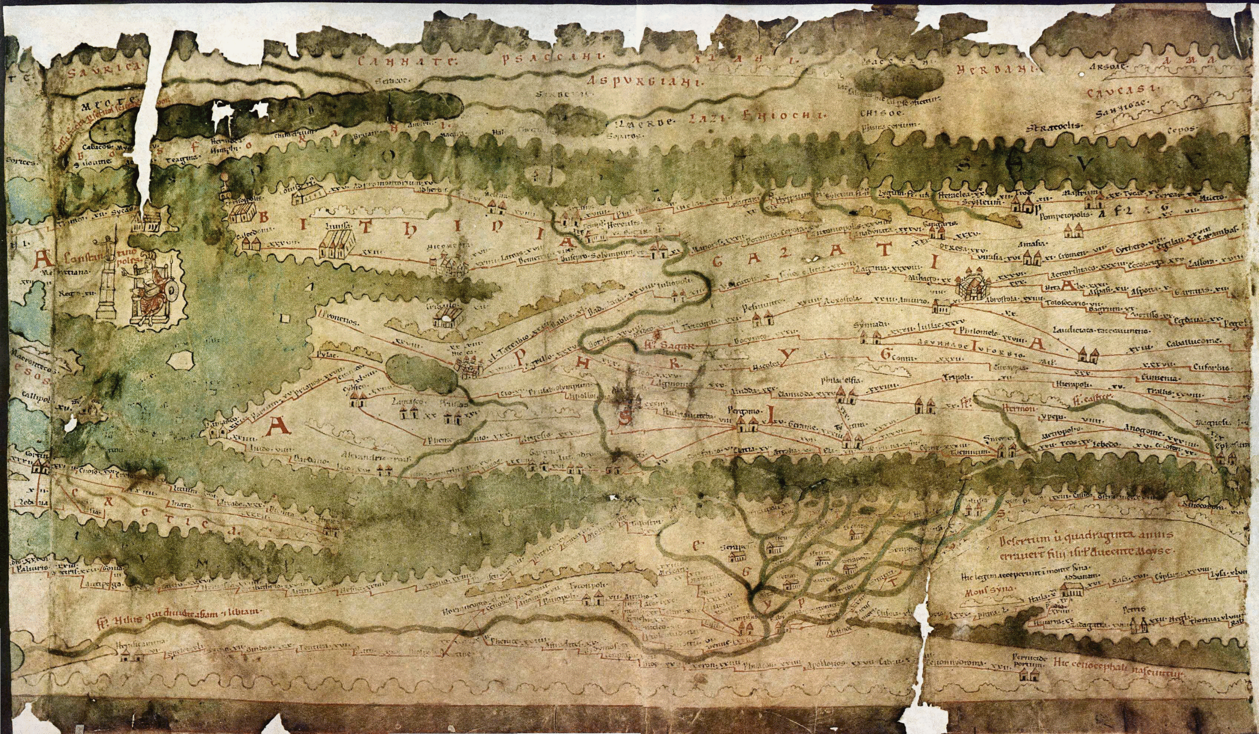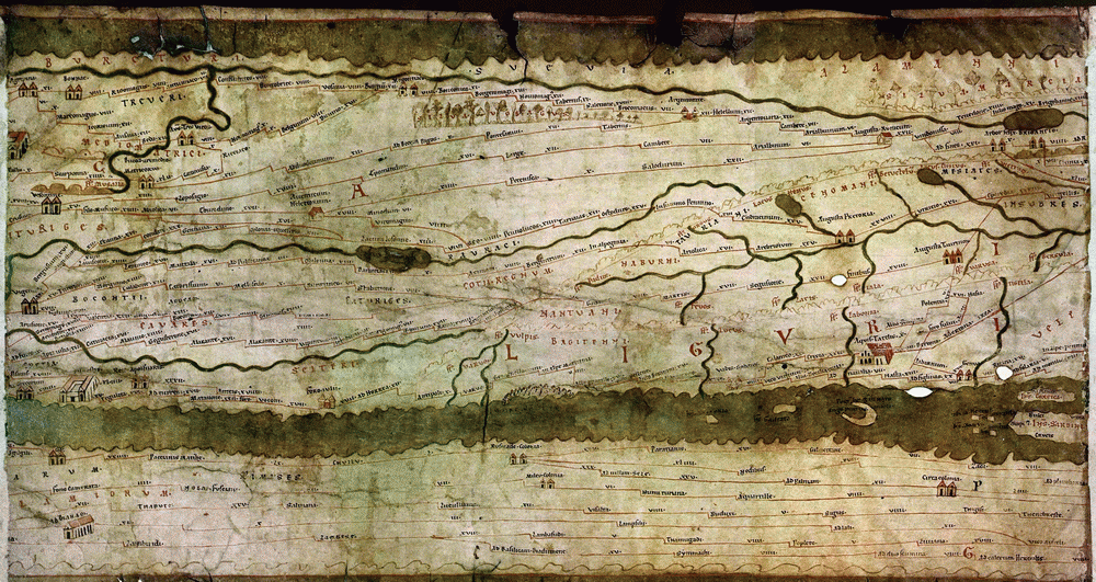 C’est une longue bande de parchemin composée à l’origine de 12 parchemins mais il n’en reste aujourd’hui que 11 entreposés à Vienne (Autriche). Assemblés ils forment une bande de 6,82 m sur 0,34 m. Elle montre l’emplacement des routes (200 000 km), des villes, des mers, des fleuves, des forêts, des chaînes de montagnes.