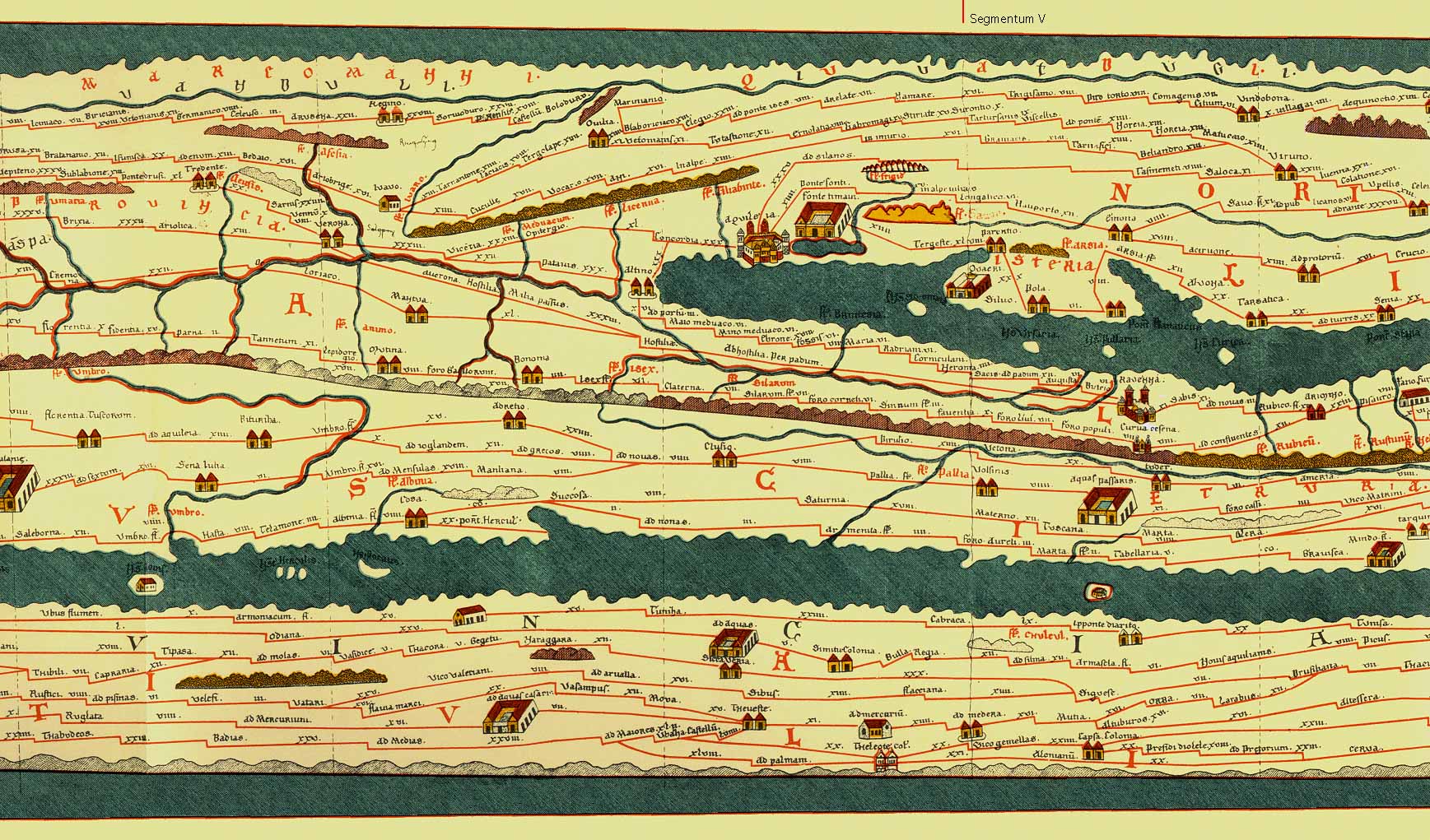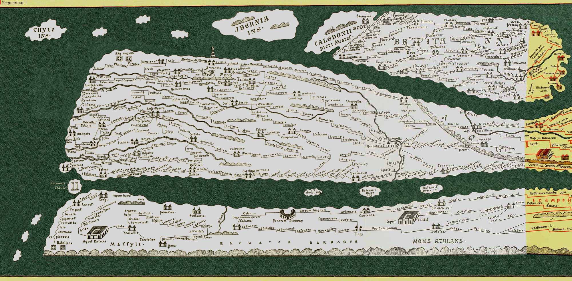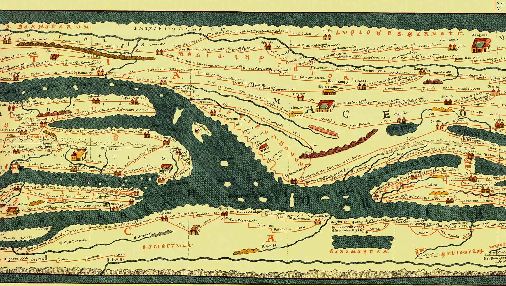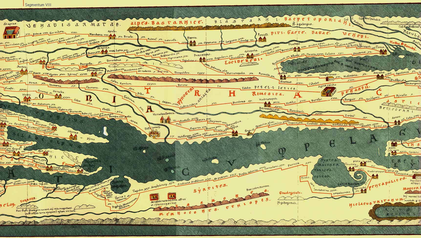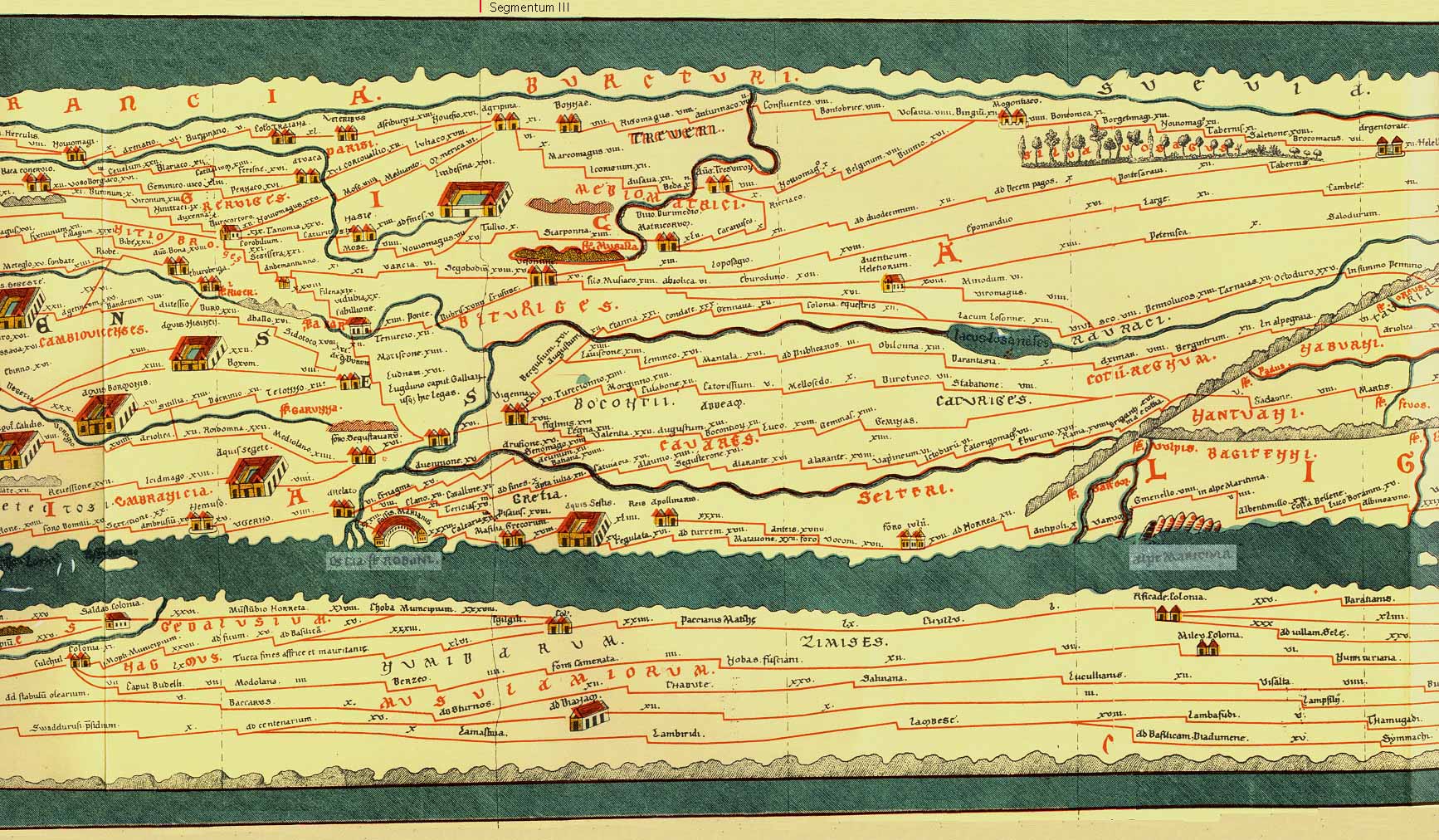 C’est une longue bande de parchemin composée à l’origine de 12 parchemins mais il n’en reste aujourd’hui que 11 entreposés à Vienne (Autriche). Assemblés ils forment une bande de 6,82 m sur 0,34 m. Elle montre l’emplacement des routes (200 000 km), des villes, des mers, des fleuves, des forêts, des chaînes de montagnes.