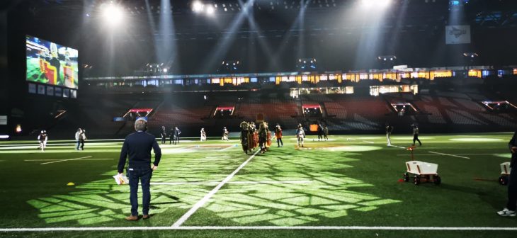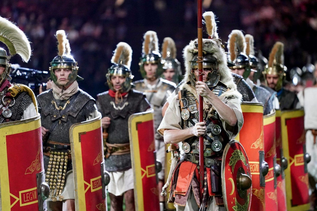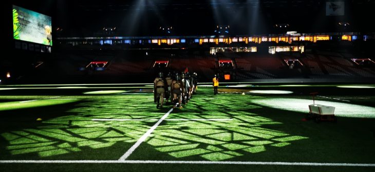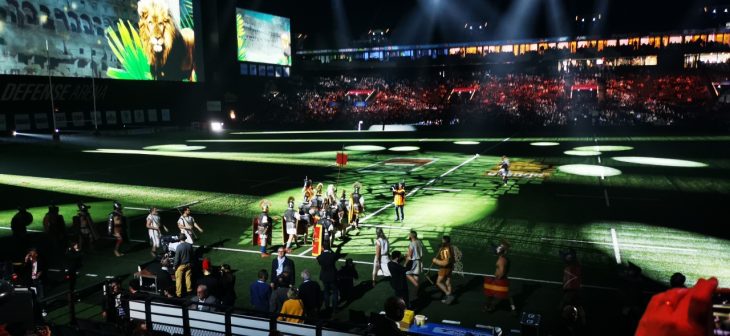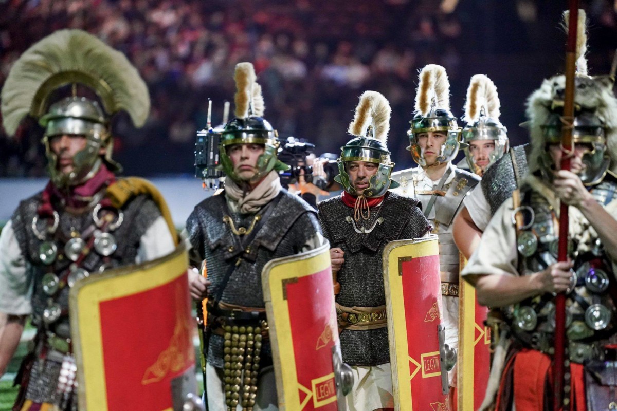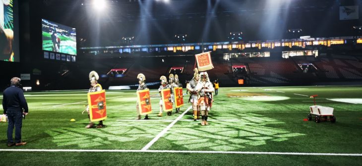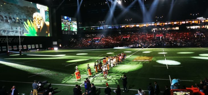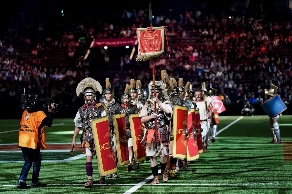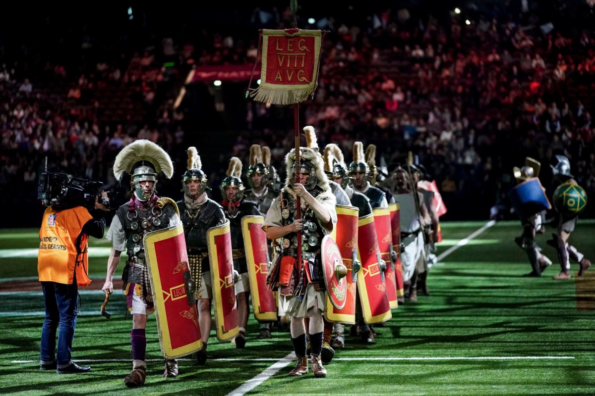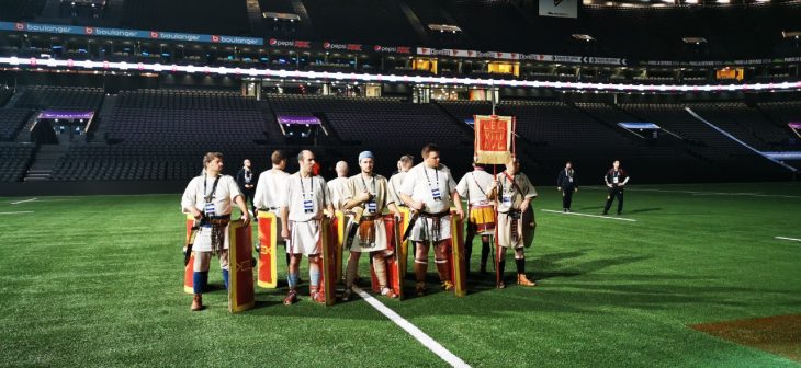 - Le show avant l’entrée des joueurs sur la pelouse de Paris la Défense Arena en compagnie des gladiateurs d’Acta et d’Arma Gladiatura.