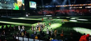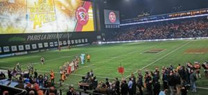 L’entrée des joueurs sur la pelouse de Paris la Défense Arena.