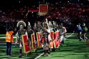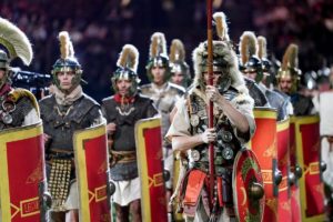 Le show avant l’entrée des joueurs sur la pelouse de Paris la Défense Arena en compagnie des gladiateurs d’Acta et d’Arma Gladiatura.