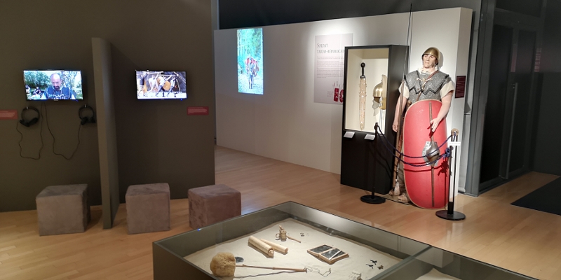 Située au 1er étage du Musée de départemental de l’Arles antique du 15 décembre 2018 au 22 avril 2019, et constituant la seconde partie de l’exposition « L’armée de Rome, la puissance et la gloire », la Legion VIII Augusta* propose au visiteur une salle sur le soldat romain constituée de ses équipements et présentant ses expérimentations à travers le prisme de la reconstitution.