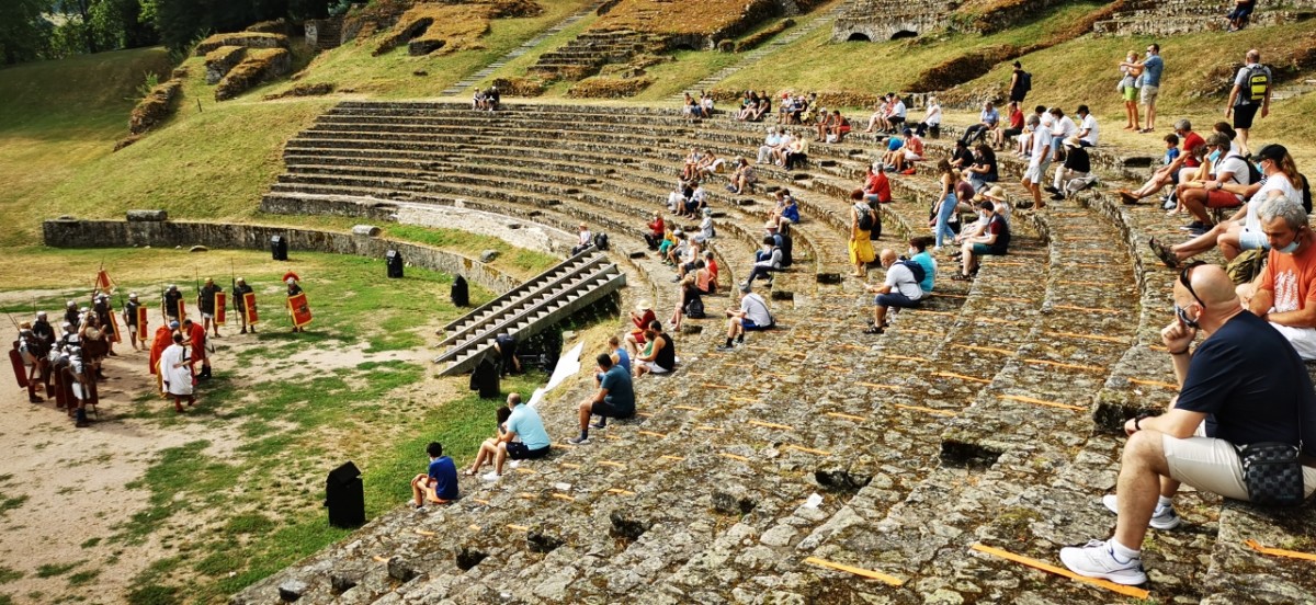 Les Journées Romaines d’Autun ont eu lieu les 1 et 2 août 2020 ! En raison de l’épidémie de covid-19, elles ont été relocalisées au théâtre romain mais elles ont pu se réaliser dans de bonnes conditions tout en respectant les gestes barrières. Le respect des règles par les bénévoles, les partenaires et par le public doit être souligné, ce qui nous donne un cru photographique des Journées romaines original par l’aspect masqué des légionnaires et des bénévoles du pôle civil mais l’ambiance, la pédagogie et le partage étaient de mise. L’association Human-Hist tient à vous remercier toutes et tous d’avoir respecté ces règles afin que l’événement se déroule sous des auspices un peu moins ternes que la situation générale dans laquelle nous sommes. Prenez soin de vous. Vale !!